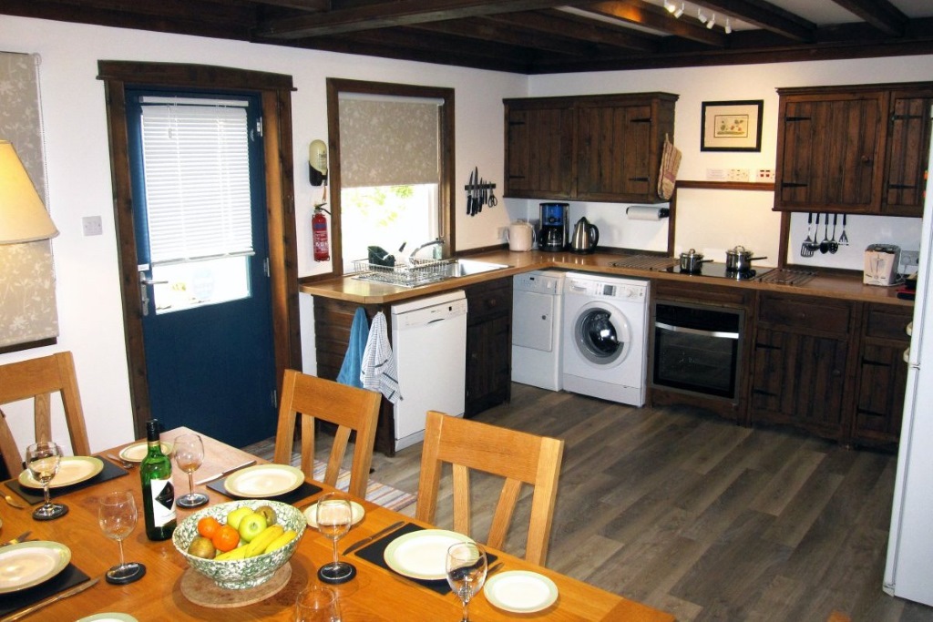 Each cottage comes with an upstairs double master bedroom with a 5ft divan and king size duvet, plus a wash-hand basin. The room enjoys glorious sea views. A second bedroom comes with twin beds. Jura’s twin room has a wash basin and there is also twin full-size bunk beds. All the bedrooms come with electric blankets, apart from the bunkroom. All the bathrooms include an electric shower over the bath.
