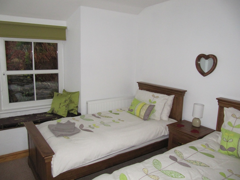 Both bedrooms and the family bathroom are on the first floor. The main bedroom has a king-size bed and the 2nd room has twin beds. The family bathroom is spacious and has a shower over the bath.