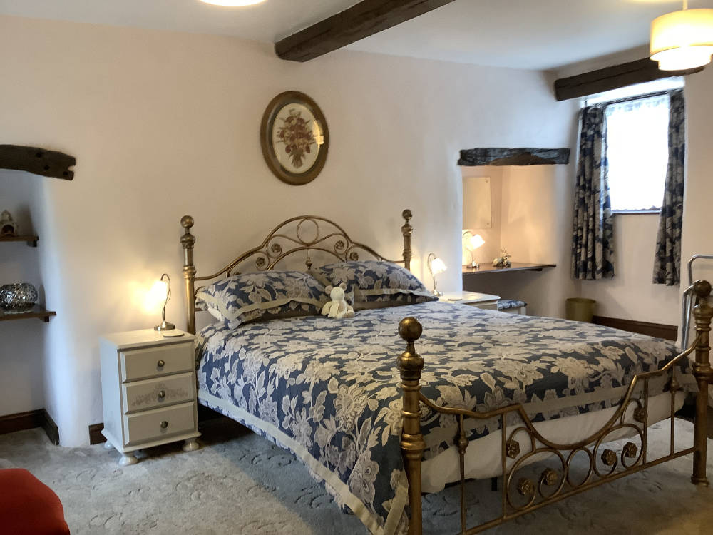 Our spacious cottage sleeps up to 4 + 2 children. There is a dining kitchen with tastefully fitted units and electric cooker, fridge/freezer. Dishwasher and microwave oven etc. Our large and comfortable sitting room has stunning views of the garden from a large window. A TV, DVD player and cast iron stove are also provided. There are 2 cosy bedrooms: a galleried family bedroom with twin beds below and 2 more twin beds on the gallery, accessed by a short ladder; the double bedroom also huge beams, a luxury iron bedstead and wonderful views of Millers Dale. The bathroom has a bath with shower over and a washbasin and toilet.