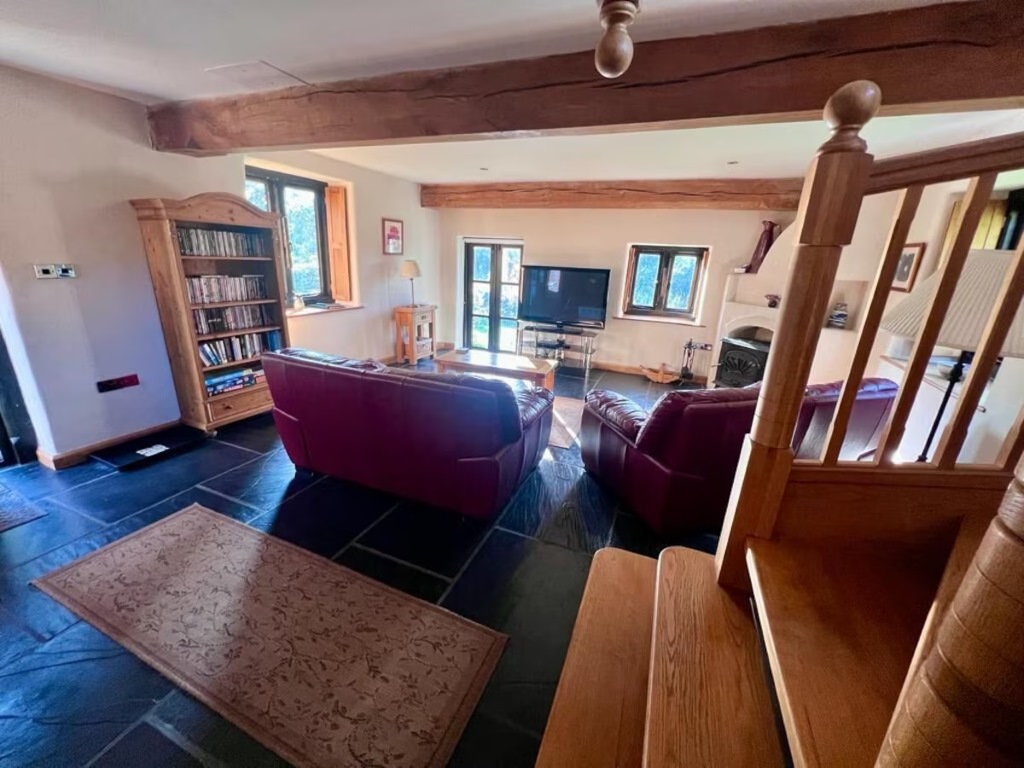Pond Cottage is beautifully appointed with every available comfort. Inside the holiday cottage you will see a very spacious living room with a slate floor and a wood burning stove which heats the house perfectly. Free logs and kindling are available.