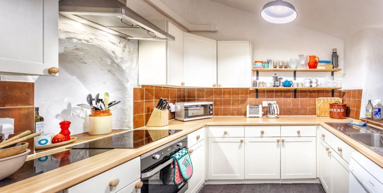 The large kitchen and dining area are perfect for family meals, with a dining table that seats up to eight people. Facilities include an electric cooker and hob, large freestanding fridge-freezer, dishwasher (with tablets provided), microwave, toaster, Grind One Nespresso-style coffee machine and cafetières. Guests will find complimentary tea from Exmoor Tea and Grind coffee pods to start their stay and the kitchen is fully equipped with everything needed to cook delicious meals. For days out, there’s a cool bag, ice blocks, plastic glasses, enamel mugs and plates and a picnic blanket for use on the beach.
