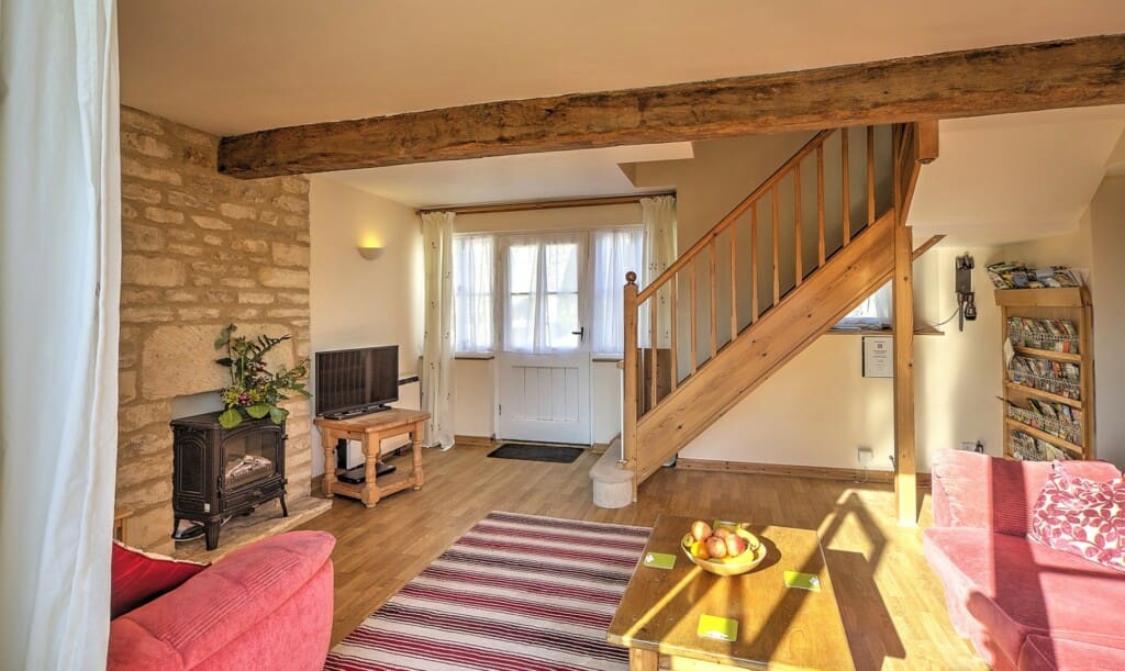 The Old Stables is a tasteful barn conversion, built in Cotswold stone. The cottage is Grade II Listed, with ornamental tallet steps, exposed beams and pine wood doors, situated in the shadow of a grade II listed manor house. The charming two-storey building has a beautiful, fully equipped kitchen with a dining area and a spacious sitting room.