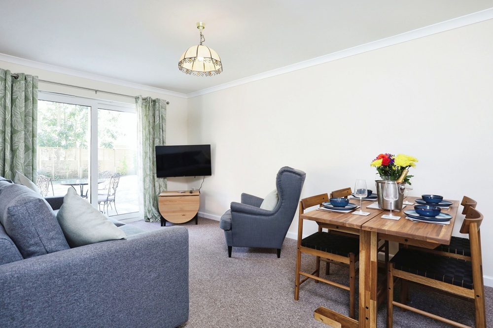 This cottage offers two comfortable bedrooms, one with a double bed and the other with flexible sleeping arrangements that can be configured as either twin beds or a double, making it ideal for families or friends. The fully equipped kitchen includes a dishwasher, electric oven and microwave, electric hob, washing machine and fridge, providing everything you need for a convenient self-catering stay. The bright and welcoming lounge opens through patio doors onto a spacious shared garden, creating a seamless connection between indoor comfort and outdoor relaxation. The large private garden is perfect for socialising, enjoying alfresco meals, or simply unwinding in the fresh sea air. For entertainment, there’s a Smart TV in both the lounge and the master bedroom, ensuring comfort and convenience throughout your stay.