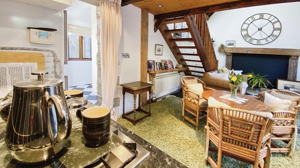 Stepping inside, you are welcomed into a spacious open-plan reception room with vaulted ceilings that fill the space with natural light. The stable door entrance adds a delightful touch of charm, while the layout creates a seamless flow between the lounge and the well-equipped kitchen, complete with a cosy dining area, ideal for relaxed meals or entertaining guests.