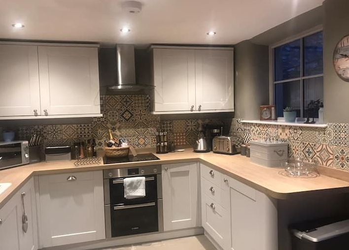 The property comes with thick stone walls and solid oak beams. Downstairs there is an open plan living/dining area with comfy seating, a log burner and a smart TV. The rustic dining table is next to the French doors. We have an antique billiards table to enjoy. The well-equipped kitchen comes with a range of appliances, including a De Longhi coffee machine.