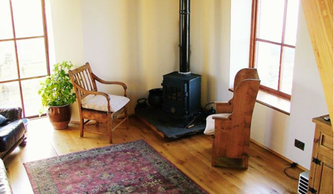 The living area has lots of space and includes a solid fuel stove. Other facilities include a TV, DVD player and stereo. Up above on a balcony is the kitchen. The mezzanine floor offers spectacular views. A utility room provides full laundry facilities.