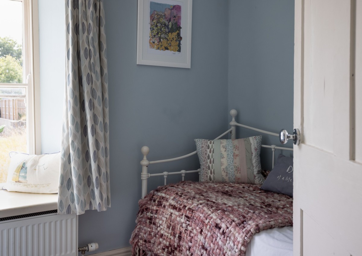 With three well-appointed bedrooms, a double, twin and single, complete with fresh white bed linen, towels and ample storage, you’ll feel right at home. The bathroom offers a deep bath, separate shower, and large vanity unit, with views stretching towards Carn Llidi, the historic Bishops Palace and the peaceful garden (aside from the lively rooks at dusk!).
