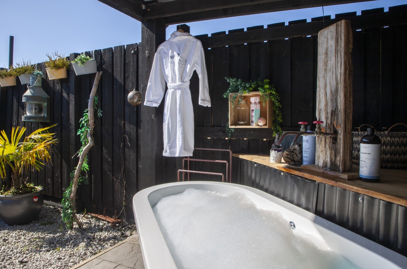 This beautifully restored former GWR train carriage combines historic charm with modern comfort. Thoughtfully converted with subtle nods to its railway heritage, it features a cosy living area with a wood-burning stove, smart TV and stylish décor beneath the original curved pitch pine roof. The carriage includes a handmade king-size bed with luxurious bedding, a fully fitted kitchen with modern appliances and a spacious shower room with double basins, robes and soft towels. Outside, a private and secluded seating area with a covered space, large gas fire pit and outdoor roll-top bath provides the perfect place to relax after a day exploring the countryside.