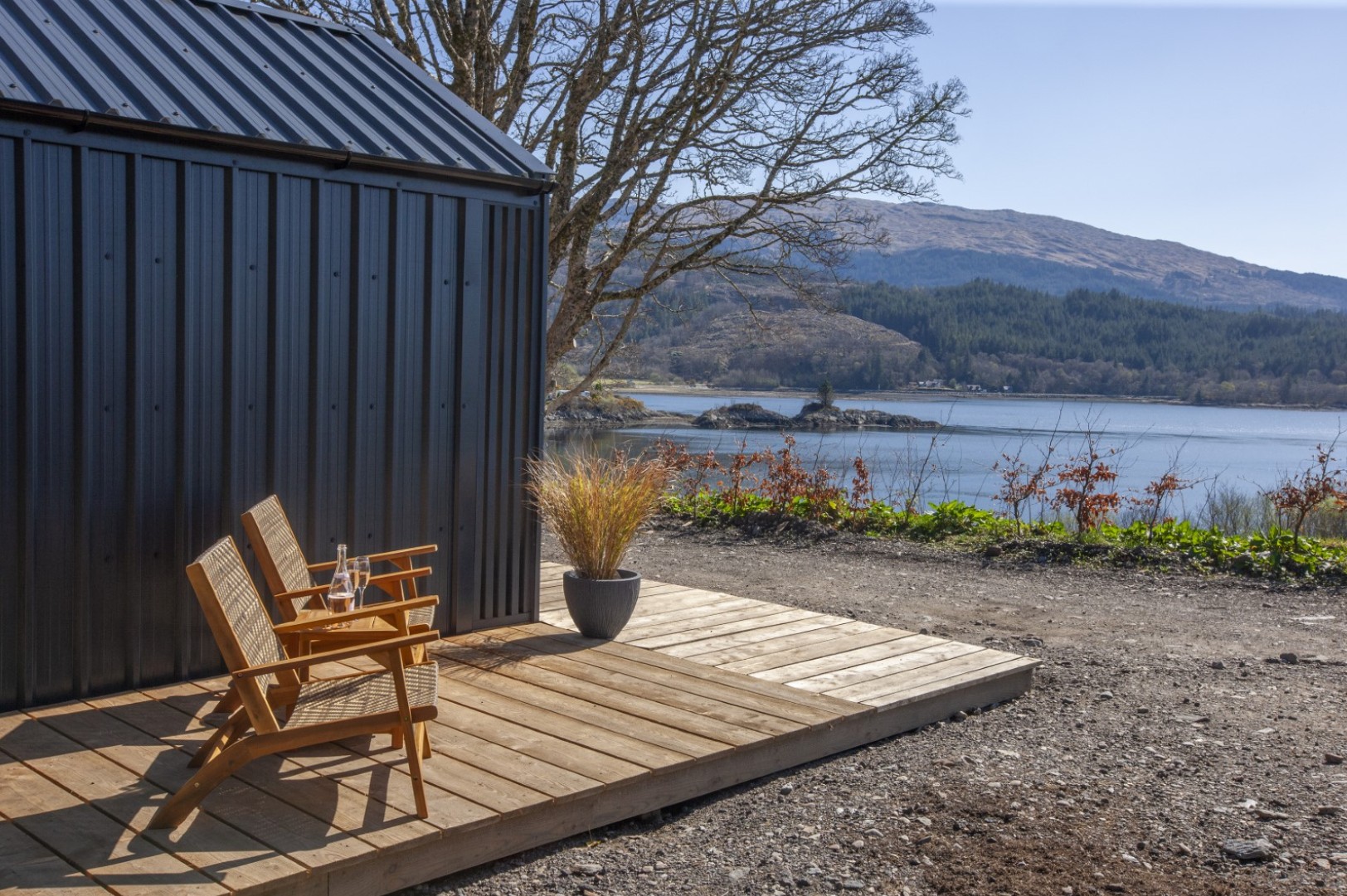Kilkerran Bothy and Loch Fyne Bothy offer peaceful retreats designed for relaxation in the heart of nature. Sleeping two guests, these charming bothies combine modern comfort with rustic character, making them ideal for couples looking to unwind. Inside, you’ll find a beautifully furnished space with stylish décor, a cosy living area and a well-equipped kitchenette, providing everything needed for a comfortable stay. Guests can also enjoy the tranquil surroundings from the private deck, perfect for morning coffee or watching the sunset.