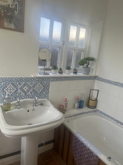 Upstairs there are two bedrooms: a double and a twin room. On the ground floor there is a bathroom with a modern white 3 piece suite and electric shower.