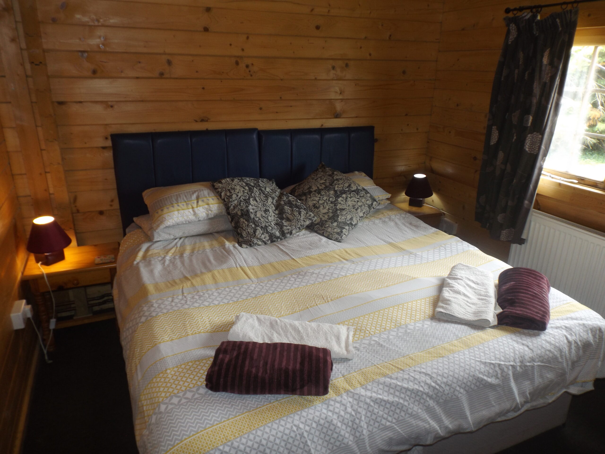 Bluebell Lodge, Primrose Lodge and Foxglove Lodge are handcrafted log cabins made from solid spruce logs, each sleeping up to five guests with two bedrooms, central heating, double glazing, parking and free Wi-Fi. They are set back from Offenham Road and offer a traditional cabin feel, with layouts that include combinations of double beds, bunks and single pine beds. Lavender Lodge offers additional space with three bedrooms and room for up to seven people, along with rural views and the same range of facilities provided in the other cabins.