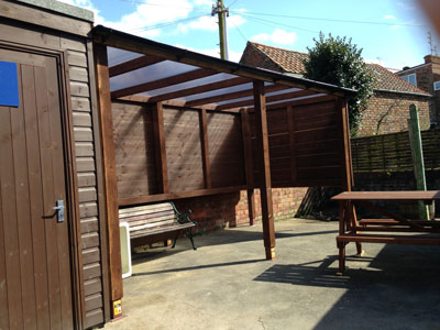 The wet room has been carefully designed with accessibility in mind and includes a wall-mounted shower with adjustable height settings, a drop-down shower chair, grab rails and full-length mirrors. Toilet seat extensions are available to hire if required. Outside, guests can enjoy a wooden gazebo with seating and tables, as well as secure mobility scooter storage.