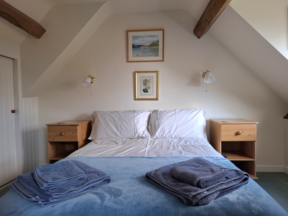 Stairs lead up from the living area to the landing, where you will find a double bedroom with Freeview TV, a single bedroom and a shower room. The shower room features a walk-in shower cubicle, wash basin, toilet and heated towel rail. Both bedrooms enjoy lovely views across the garden.