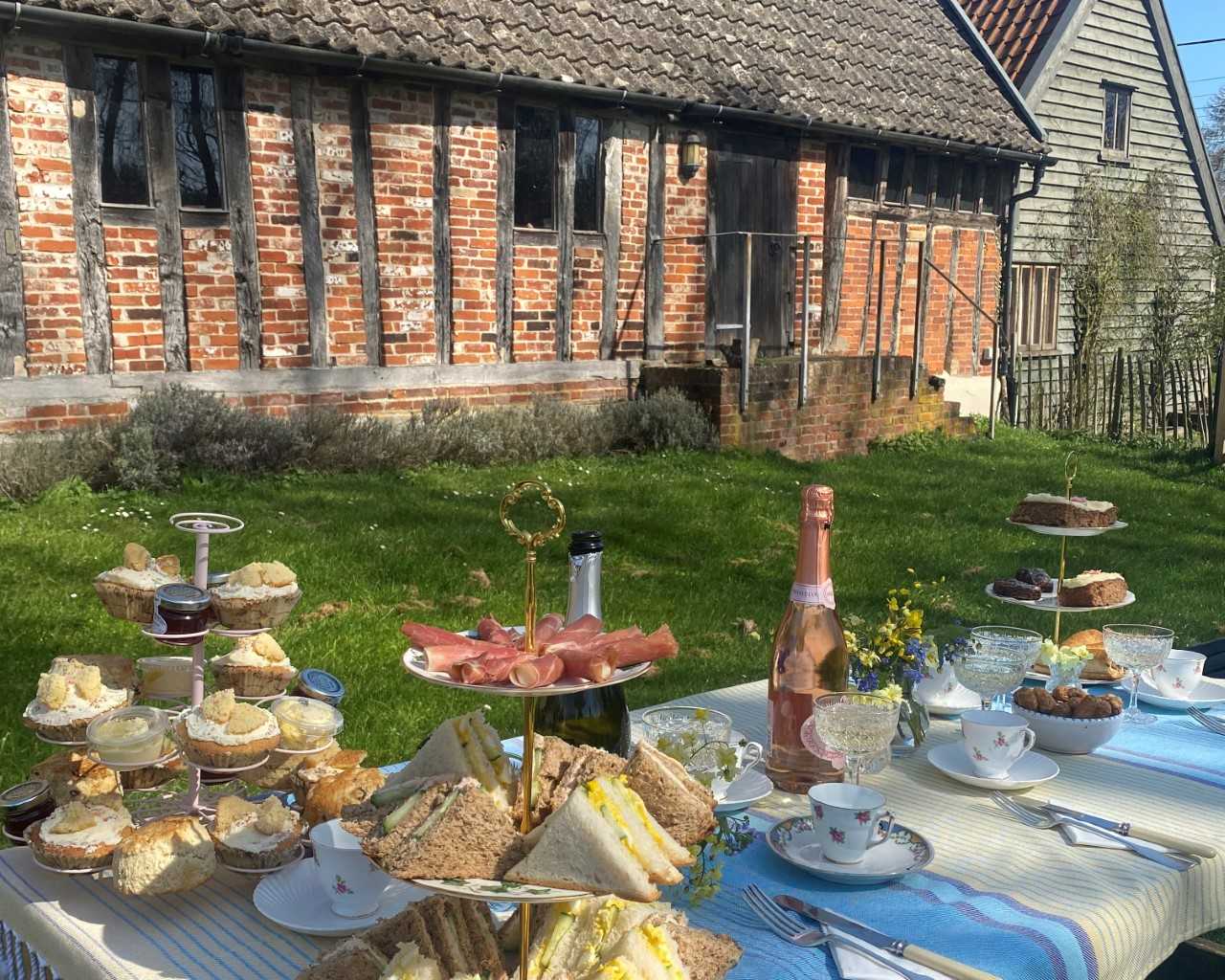 Outside you can BBQ, play tennis or table tennis, or play croquet, badminton and boules in the sunny, often rose-scented, herb garden. Beyond, enjoy the wildlife on our farm trails and family farm activity pack, play rounders or football in the meadow, pond dip, picnic or enjoy the barn’s fleet of 20 road bikes and explore the quiet country lanes; or explore further – walk to historic Lavenham for a cream tea or pub lunch. In the evening, borrow our Tudor costumes, eat off wooden platters, drink ale from goblets and dance by candle-light to madrigals.