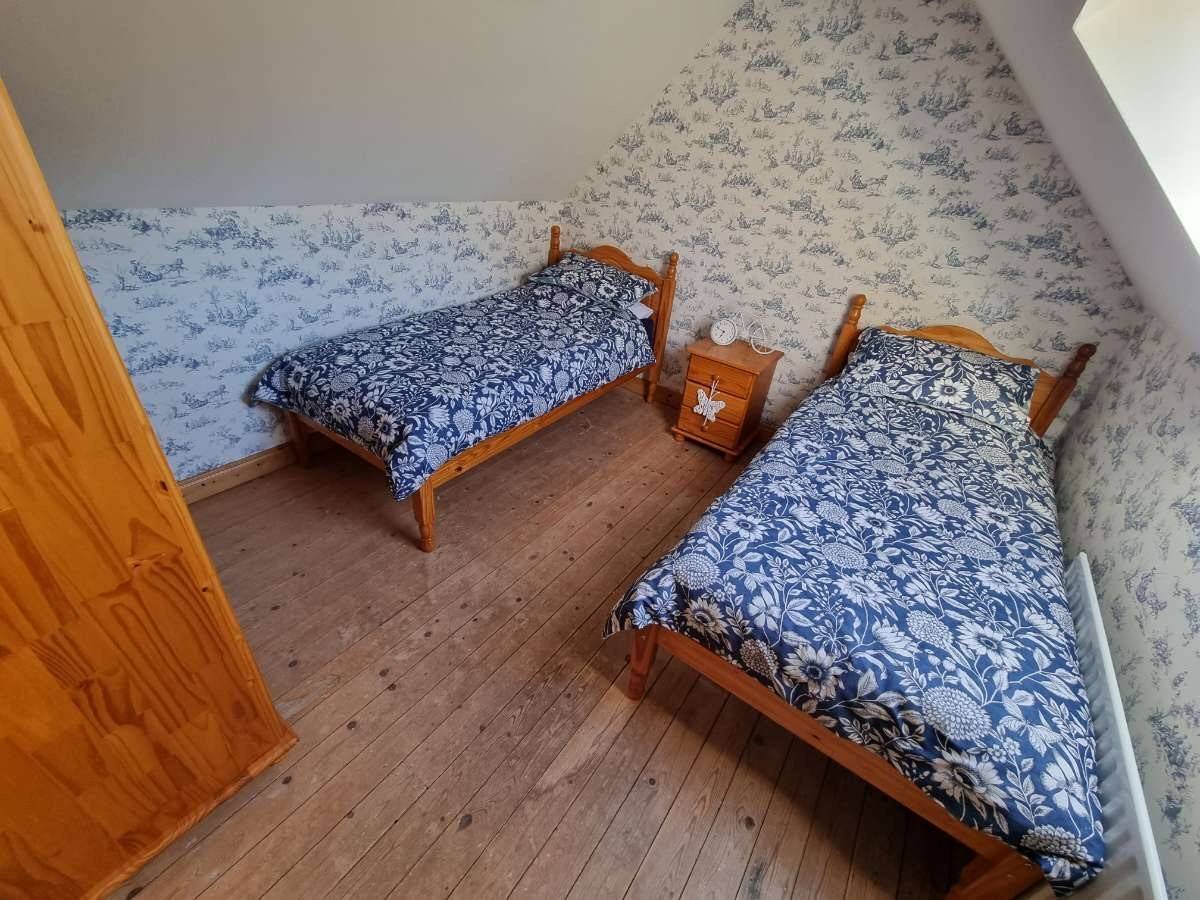 The cottage offers a flexible layout, with one double room and one twin room on the ground floor and a further double and twin room upstairs. A wheelchair-accessible wet room is located on the ground floor, with an additional bathroom on the first floor. The kitchen and living area features a large hearth with an open fire and is fully equipped with essential cooking and dining facilities, making it well suited to individuals, families, groups and business travellers.