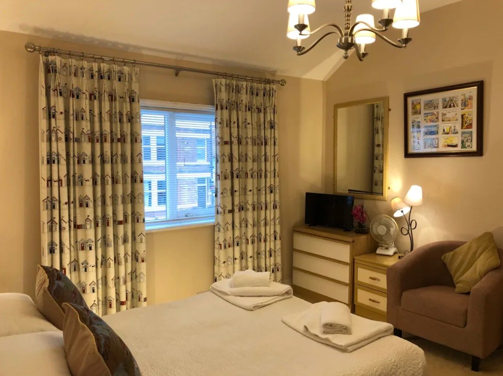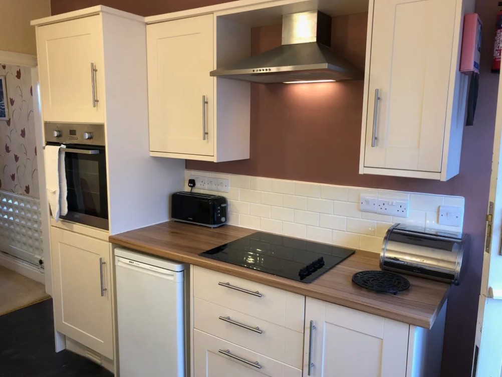 This first floor flat comes with a large lounge with a 3 seater sofa plus 2 seater sofa and additional seating in the bay window. Facilities include a smart TV and DVD player. Enjoy some home-cooking in the fully-equipped kitchen that comes with an electric hob, fan assisted oven, microwave, freezer and fridge. Bedrooms consist of a king and single room.