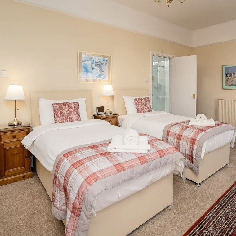 The centrally heated cottage is ideally located just 600 metres from both the town centre and the seafront, making them easily accessible on foot. An entrance hall leads into an attractive and tastefully furnished dining room with an open-plan, fully fitted kitchen and breakfast bar, equipped with an electric oven and hob, fridge/freezer, microwave and dishwasher, while a shared laundry room provides a washing machine and gas dryer and there is also a convenient ground-floor cloakroom. Double doors open into a comfortable lounge furnished with a sofa and two armchairs, creating a relaxing space to enjoy the 56-inch Smart TV and free Wi-Fi. The large, bright main bedroom overlooks the front garden and features two single beds that can be linked to form a six-foot super king-size bed, along with an en-suite bathroom, while the second bedroom also benefits from an en-suite and is furnished with twin beds.