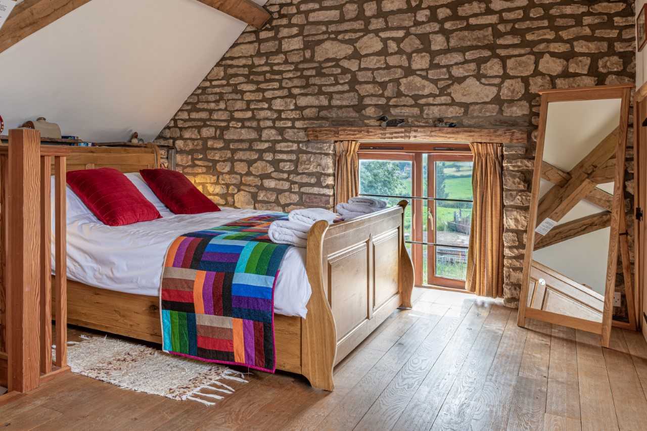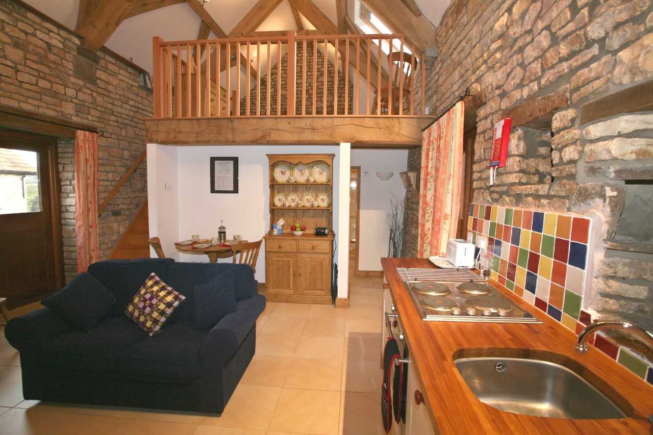 This old barn store provides accommodate for 4 people. On the ground floor is an open plan kitchen/living area. upstairs is a king-size bedroom with great views. Below the mezzanine floor is the second bedroom which can be a twin/king size bedroom.