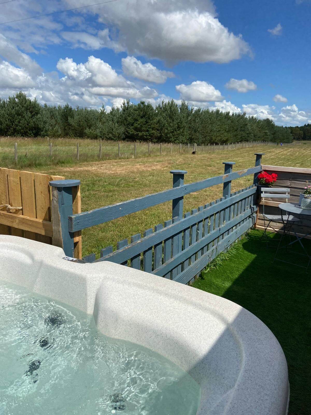 WeeTwo is a snug log cabin apartment designed for two, combining rustic character with modern comfort for an easy, laid-back stay. Built from natural logs, the space has a warm, homely atmosphere that makes it ideal for switching off and enjoying some quiet time together. Just outside, your private hot tub sits beneath a sheltered pergola beside the cabin, with a small seating spot that’s perfect for relaxing in the fresh air. Inside, the king-size bedroom connects through bi-fold doors to a comfortable open-plan living and kitchen area with a sofa, dining table and Smart TV, while central heating with a Hive thermostat and WiFi keep everything convenient. There’s a compact ensuite shower room with strong water pressure and a well-equipped kitchen set up for two, complete with a ceramic hob, air fryer, combi oven, grill and microwave, small fridge freezer, toaster, kettle, Tassimo coffee machine, crockery, pans and a washer dryer. Towels and bed linen are included, the bed is prepared for your arrival and waffle robes are provided for easy trips to and from the hot tub.