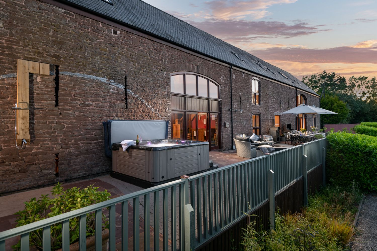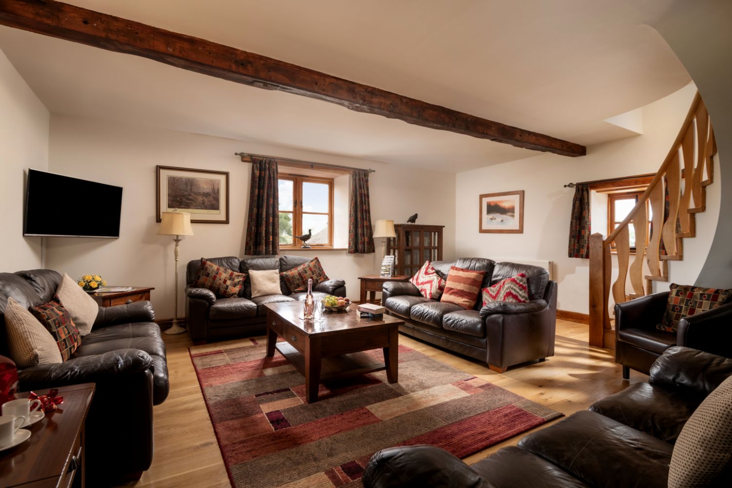 The property sleeps up to 18 guests in 8 en suite bedrooms, including a lavish family bedroom. The barn enjoys glorious views of the rolling countryside, ideal for a relaxing retreat or group holiday.