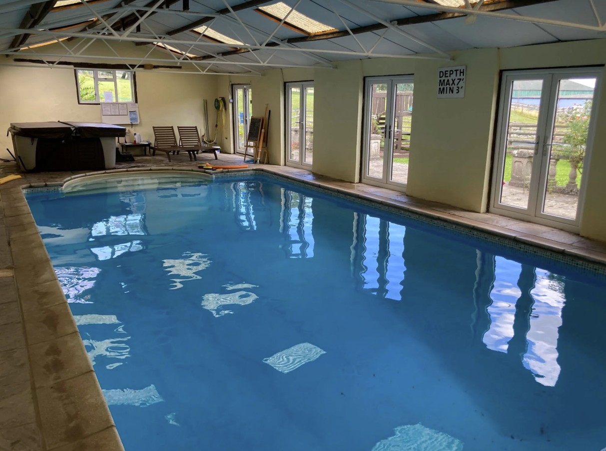 There is a heated indoor swimming pool, hot tub and games room, with a slide and swings for smaller children and there is plenty of room to sit out or have a barbecue. A stream runs through the farmyard and there are friendly farm animals to get to know, a paradise for children and adults alike.
