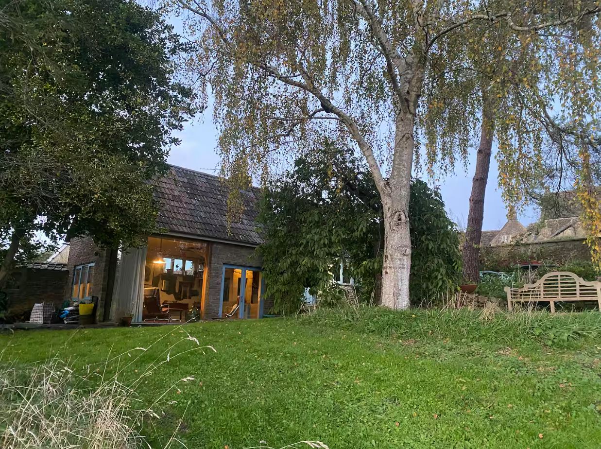 An architect-designed steel staircase leads to a galleried area with a sofa bed available by request for adults only. The main bedroom offers a comfortable king-size bed and a peaceful atmosphere for a restful night’s sleep. The enclosed garden is a beautiful outdoor space with seating, a fire pit and direct access to the church mead. The Garden House is a delightful escape, perfectly suited for a quiet break, artistic inspiration or a countryside getaway close to Bath.