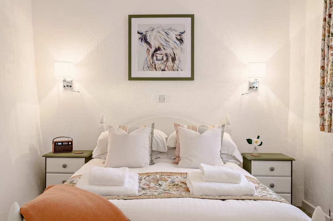 Guests can enjoy our heated swimming pool, open from May through September, while the gardens remain accessible all year as we continue restoring them to their former splendour. The grounds offer plenty to explore, including a fire pit, swing set, picnic bench, large outdoor chess set and tucked-away corners that are perfect for summer picnics, family games, or relaxing with a drink at sunset. There are also opportunities to meet and help feed the friendly goats and sheep — including the well-known Jock — or take a peaceful walk with the dogs through the orchard, making it an ideal countryside escape for visitors of all ages.