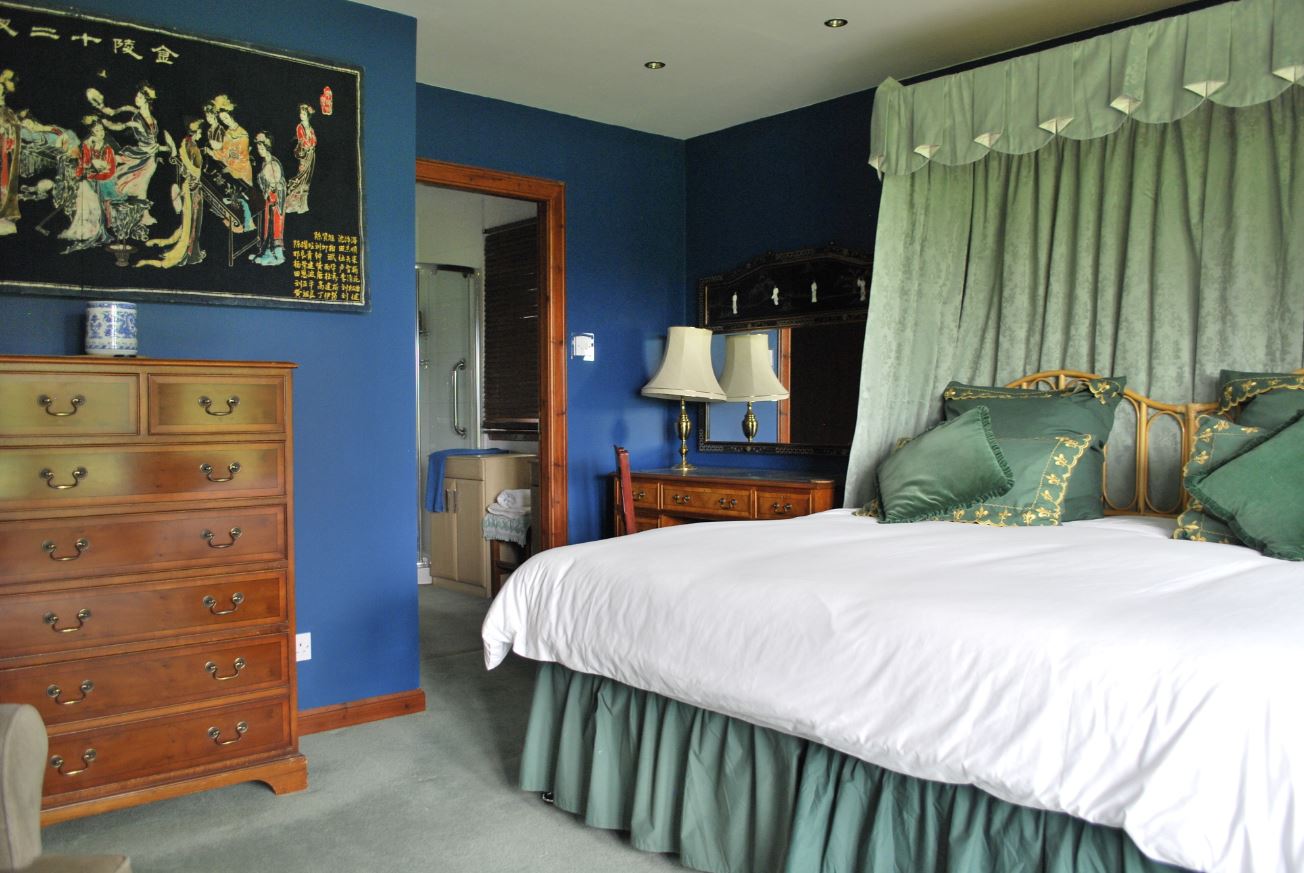 The spacious sitting room features a TV, DVD player and a live flame gas fire, creating a cosy atmosphere. French doors lead out to the terrace, where you can relax and enjoy the lovely hill views. The large double bedroom comes with a bay window seating area, perfect for sipping your morning coffee before breakfast. The super king-size (zip-link) bed promises ultimate comfort for a restful night's sleep.