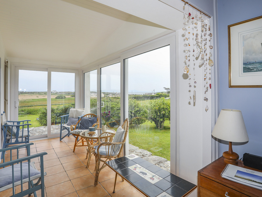 Ty Haf is set within a peaceful seven-acre field on the lane leading down to a long sandy beach, just a five-minute walk away. The bay, one of the most beautiful in Anglesey, is ideal for both families and water sports enthusiasts. You can also simply sit back and enjoy the stunning sea views and the sight of birds on the small lake nearby.