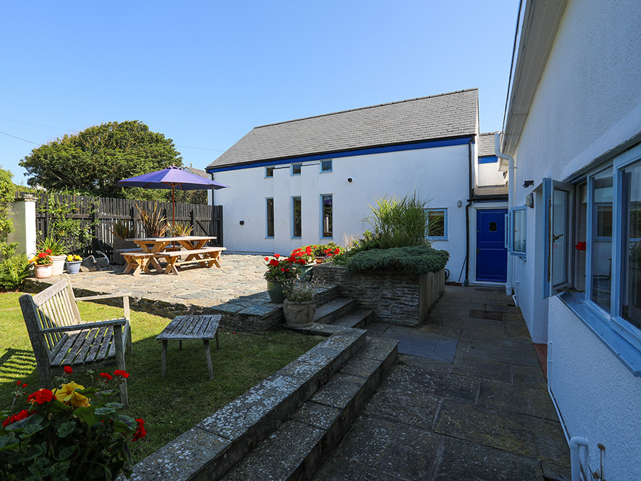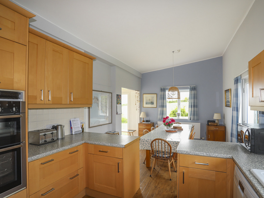 The house comfortably sleeps between two and ten guests, including children, and features three main bedrooms and two bunk rooms. Linen and towels are provided for your convenience. Inside, there’s a spacious sitting room with a wood fire, a sunroom with full-length sliding doors opening onto the terrace and a fully equipped kitchen with an adjoining dining area that seats up to twelve. A loft playroom and table tennis table offer extra fun for all ages, while off-road parking, a large fenced garden, and a sheltered courtyard provide plenty of outdoor space. There is also seven acres of surrounding land available to explore.