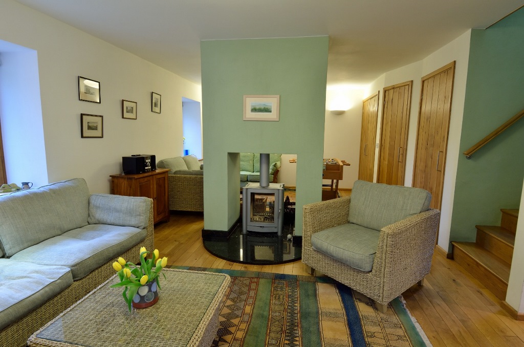 This beautifully renovated property had a wonderful extension added using sustainable materials. All the wooden floors have underfloor heating through a ground source heat pump and solar hot water panels. All the rooms are beautifully furnished and a number of painting and prints by local artists adorn the walls.