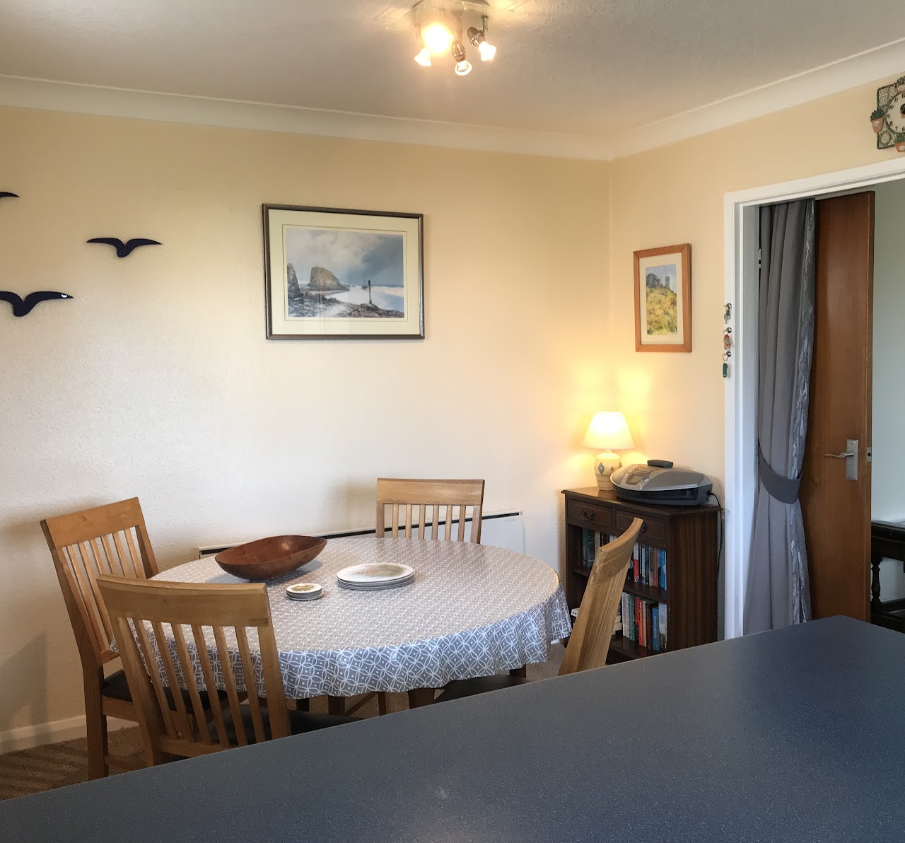 The cottage sleeps five guests in two double bedrooms and a single room. It is tastefully furnished throughout and features a conservatory leading to a sheltered, fully enclosed back garden with mature shrubs, patios and ample seating, making it ideal for both families and pets. The open-plan lounge and dining room is complemented by a breakfast bar and kitchen area, which includes a washing machine and under-counter larder fridge. The single bedroom is a child-friendly room furnished with a full adult-size single bed. The conservatory opens out to sunny, secluded gardens with inviting patio spaces and the property includes EE Wi-Fi, plenty of driveway parking and a garage suitable for storing surfboards, pushchairs and more, as well as an additional freezer.