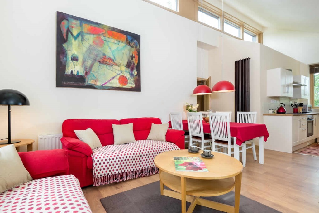 This colourful and angular property sleeps 4. There is a double en suite and twin en suite.