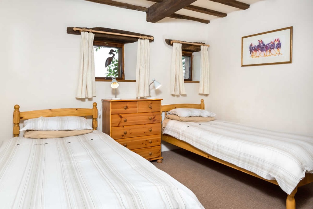 Twin with small single beds, 2'6" wide, suitable for adults & children.