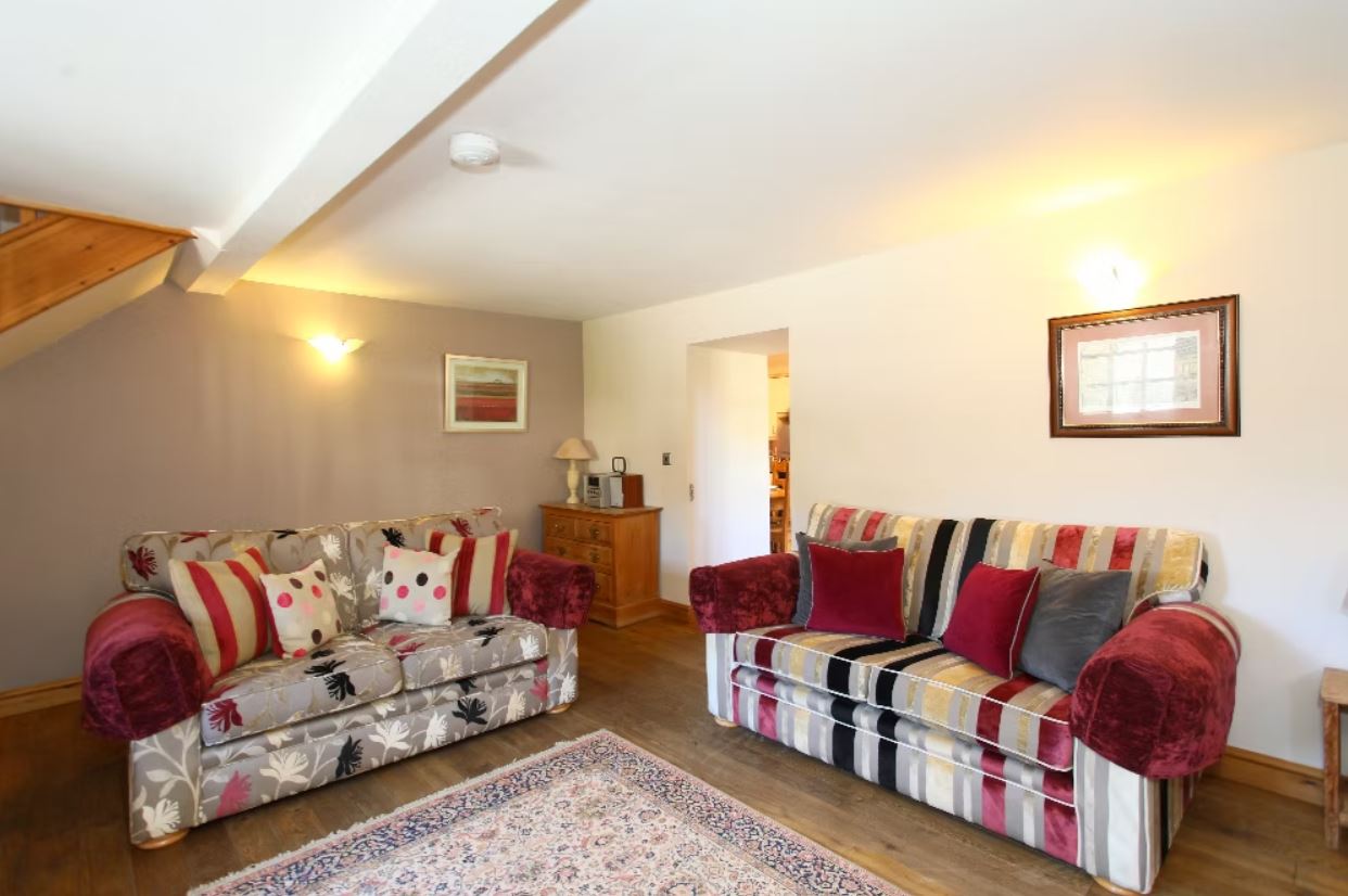 The cottage has been tastefully converted from a 17th Century coach house and barn. The cottage sleeps 4 people two fantastic bedrooms. The master bedroom boasts a walk-in wardrobe and the second bedroom has adult-size bunk beds. The bathroom comes with a large shower and a separate freestanding roll-top bath. On the ground floor is a large sitting room with Free-Sat TV, a DVD and an iPod dock. The fully equipped kitchen is great for home cooking and includes a fridge, microwave, freezer and dishwasher. Outside there is a private patio area, great for a coffee in the morning sun.
