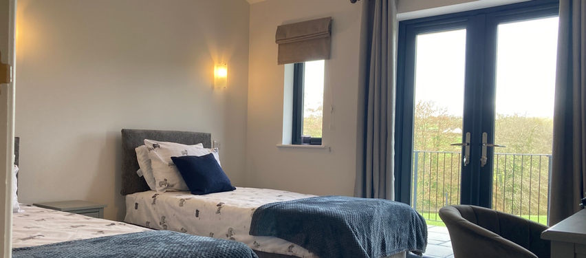 This beautifully designed lodge features an open-plan living space with a fully equipped kitchen, dining area and sitting area complete with a corner sofa bed and a dining table for six. The master bedroom offers a super-king-size zip-and-link bed that can be made into twins on request, along with an en-suite bathroom featuring a bath with shower over, basin, WC and heated towel rail. The second bedroom includes twin zip-and-link beds, which can also be converted into a super-king-size. The modern kitchen is fitted with a microwave, four-ring hob, full-size oven and grill, fridge-freezer, dishwasher, toaster, kettle and slow cooker, while a separate utility room provides a washing machine for added convenience. There is also a spacious shower room with a walk-in shower, hand basin, WC and heated towel rail. Guests can unwind in comfort with eco-friendly underfloor heating throughout, a 50" Smart TV, and free superfast satellite Wi-Fi (140 Mbps). French doors open onto a west-facing veranda and patio, perfect for enjoying sunsets and countryside views. The lodge sleeps four guests, with space for two additional guests on the sofa bed for an extra nightly charge.