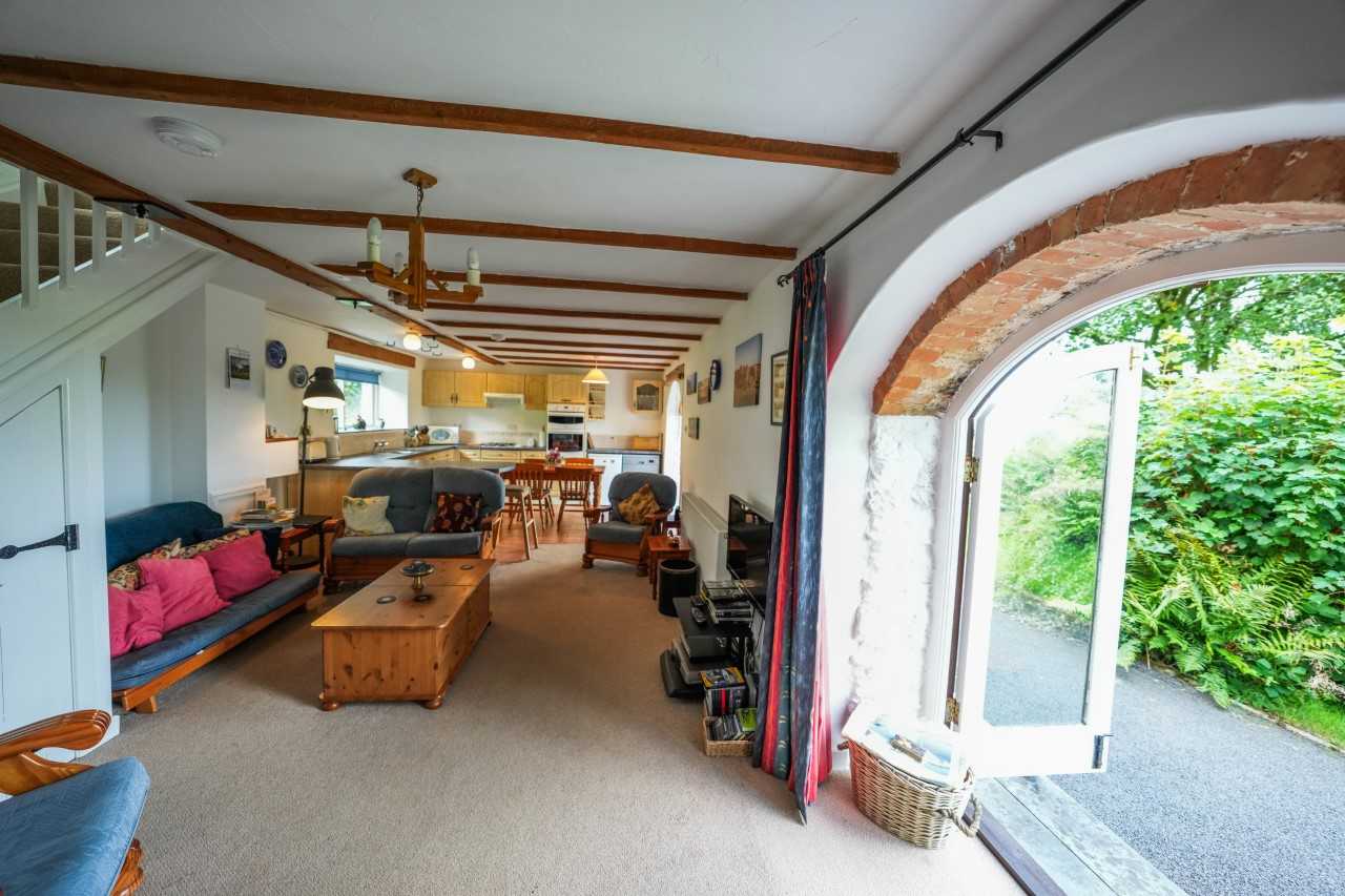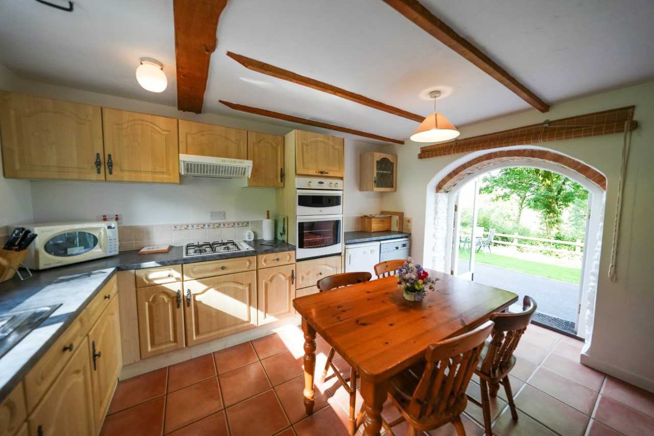 The secluded Red Linhay has been beautifully restored and converted, using a combination of traditional and modern materials. The result is a spacious, well appointed, comfortable warm home, with double-glazing throughout and central heating in every room. And for those who really like the warmth we have a modern log-burning stove and a free supply of logs. Outside there is ample parking and a large, grassed garden front and back, a stream and waterfall to the front, a children’s play area and a barbecue and picnic table.