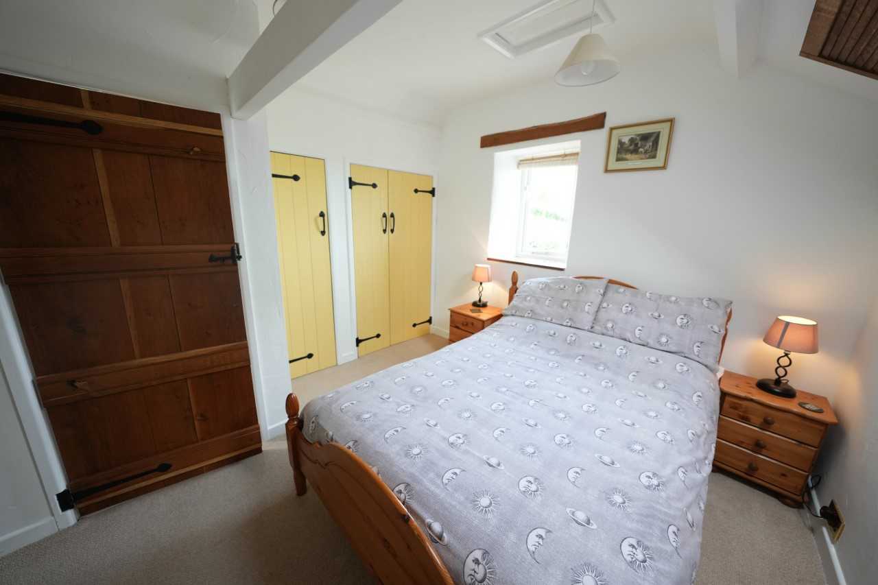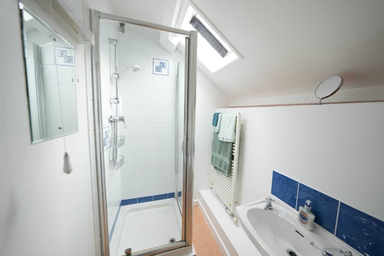We offer a two-bedroom cottage (one double, one twin, both with ensuite shower rooms) sleeping up to 4 plus a cot for couples, families, or individuals. Downstairs through the front door is a porch and cloakroom with WC and washbasin, and a door into a large open-plan lounge and kitchen/dining area with access outside through 2 sets of attractive arched French doors. The kitchen is very well-equipped with eye level double electric oven with grill and a gas hob, dishwasher, washing machine and has ample work tops and cupboards. You can also enjoy our own spring water “on-tap”. The lounge has a TV and DVD player, and free Wi-Fi.