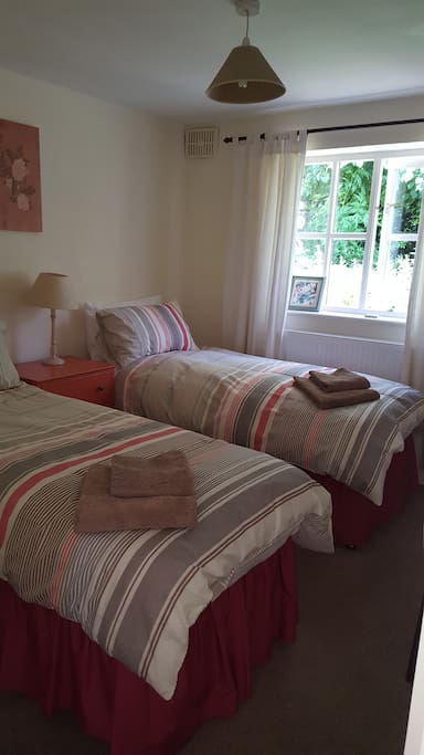 Our cosy cottage can sleep up to 4 people in 2 bedrooms. The master bedroom has a double bed, hanging cupboard, two chests of drawers & bedside tables with lights. The second bedroom is small with twin single beds, hanging cupboard, & small chest of drawers with bedside light.