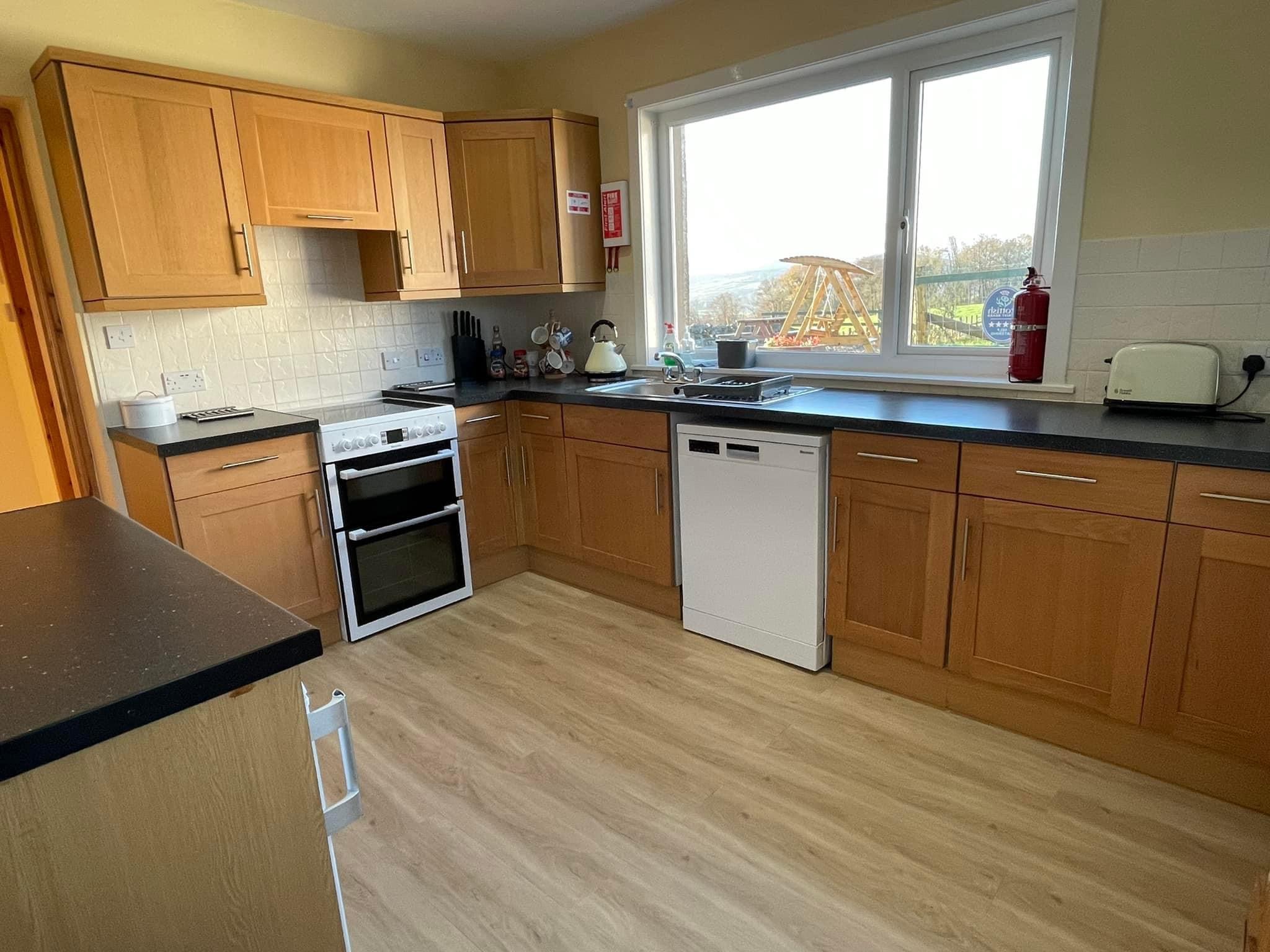 Inside, the cottage is warm and inviting, featuring full central heating, double glazing and a wood-burning stove. The cosy sitting room is furnished with a comfortable sofa and easy chairs and includes a 40” Smart TV with FreeSat and a DVD player. The well-equipped kitchen features new worktops, an electric cooker, fridge, microwave, dishwasher and other essentials. A charming breakfast/reading room at the front of the cottage offers spectacular views down the valley. Additional amenities include a laundry area with a washing machine and freezer.