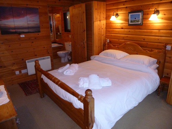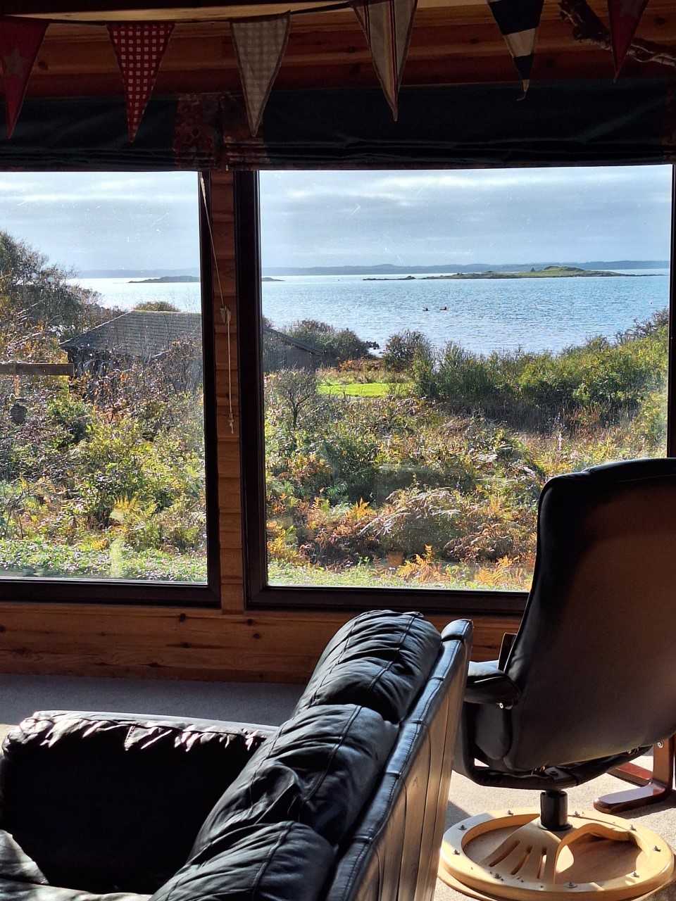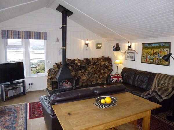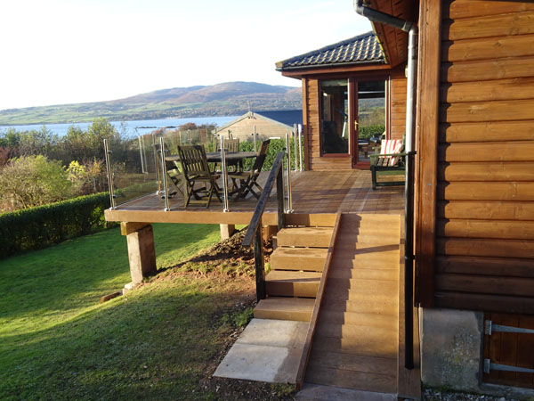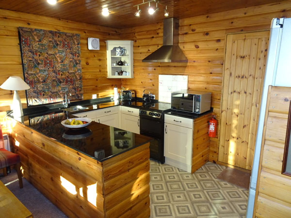 This is a spacious three-bedroom log cabin set in private grounds surrounded by woodland and overlooking the sea toward the Murray Isles. Just 100 yards from a lovely sandy beach, it offers a peaceful setting perfect for total relaxation. The living room opens onto a decked area with stunning views, while a log-burning fire creates a cosy atmosphere throughout the year. The open-plan dining area features a large table for six and the fully equipped kitchen includes modern appliances such as a dishwasher and ample utensils. A utility room provides a washer, dryer and extra fridge. The sunroom, with reclining chairs and a telescope, is ideal for unwinding and enjoying the scenery. The master bedroom includes a king-size bed, en-suite bathroom and built-in wardrobes. A second double bedroom and a twin room offer comfortable accommodation for family or friends, with a main bathroom complete with shower and vanity unit. Outside, there is parking for up to four vehicles, along with garden furniture and a barbecue for outdoor dining.