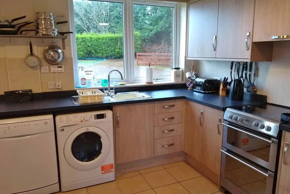 Kitchen; Washer/dryer; fridge/freezer, dishwasher, electric cooker, microwave, dining table and 6 chairs. A high chair is available on request.