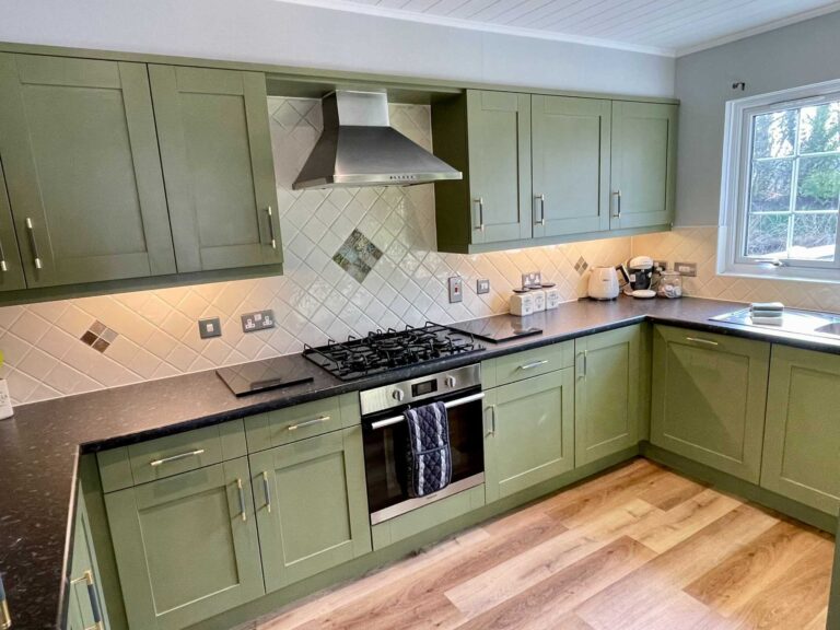 The fully equipped kitchen features an oven, hob, microwave, coffee machine, fridge/freezer, dishwasher, and washer-dryer. The spacious, open-plan living and dining area is perfect for families or groups of friends, with a dining table seating six, two large leather sofas, two single chairs, and a media wall with a 55” TV, Sky Q and Netflix. A 50” log effect electric fire adds warmth and ambiance. Full fibre broadband with speeds of 100+ mbps ensures reliable WiFi throughout. There is also a W/C with a wash basin in the hall area.
