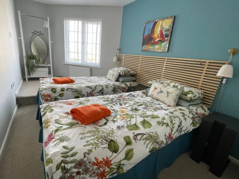 The top floor offers a twin bedroom (or king-size double upon request) with a 32” TV and Sky Q, and an en-suite shower room with a hand basin and W/C.