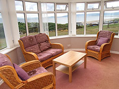 The pretty front gardens overlook the sea, whilst the long grassed rear garden includes elevated sitting areas. You also have use of a garden shed for storing bikes/golf clubs.