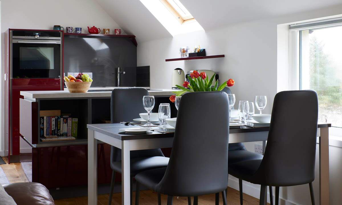 Skyelight Apartment is a contemporary, pet-friendly holiday apartment located in the heart of Portree, offering a comfortable stay for up to four guests. Situated on the first floor, this stylish two-bedroom apartment blends modern luxury with soft, inviting textures and boasts stunning views over Loch Portree and the Cuillin Hills.