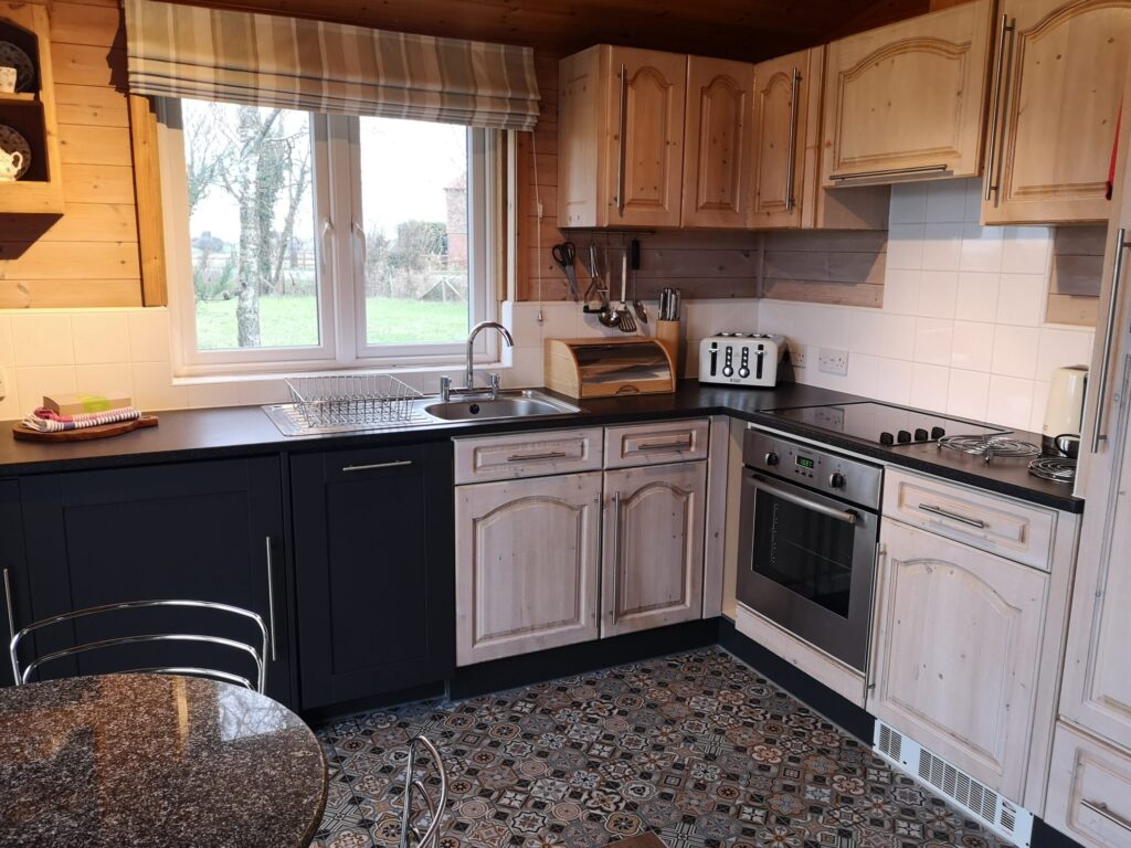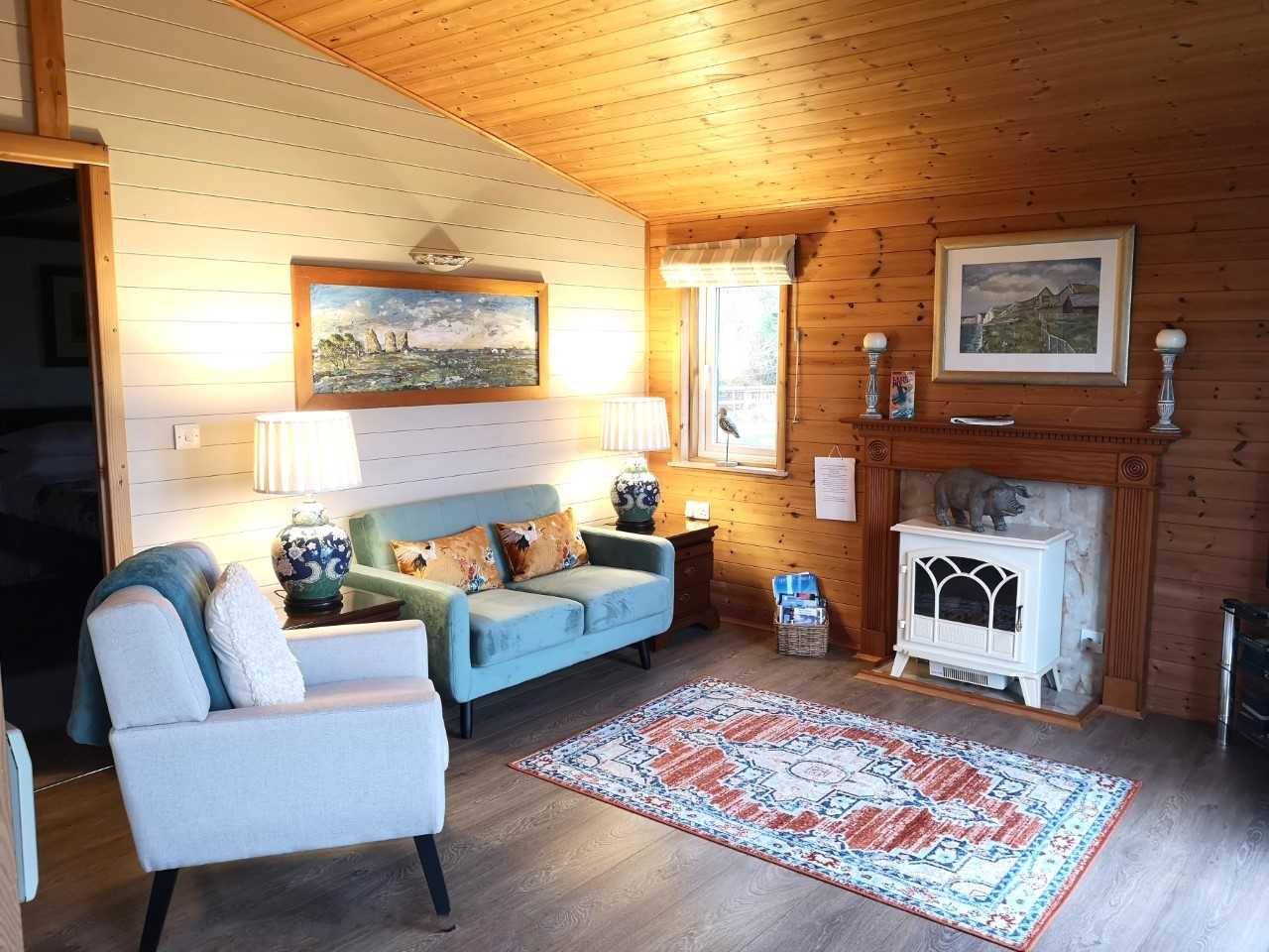 Sleeps 2. Treat yourselves to our luxury lodge for couples - ideal for honeymoons or just an excuse to indulge yourselves and unwind from the stress of everyday living. Just the place to sip a cocktail and watch the sun go down! King size four-poster bed, en-suite bathroom, corner Spa Bath, Mira Shower, sauna, living area with panoramic views, decked verandah. Two rattan chairs with footstools. TV, DVD, modern and fully equipped kitchen, stainless steel fan oven, halogen hob, microwave, dishwasher, washing machine.