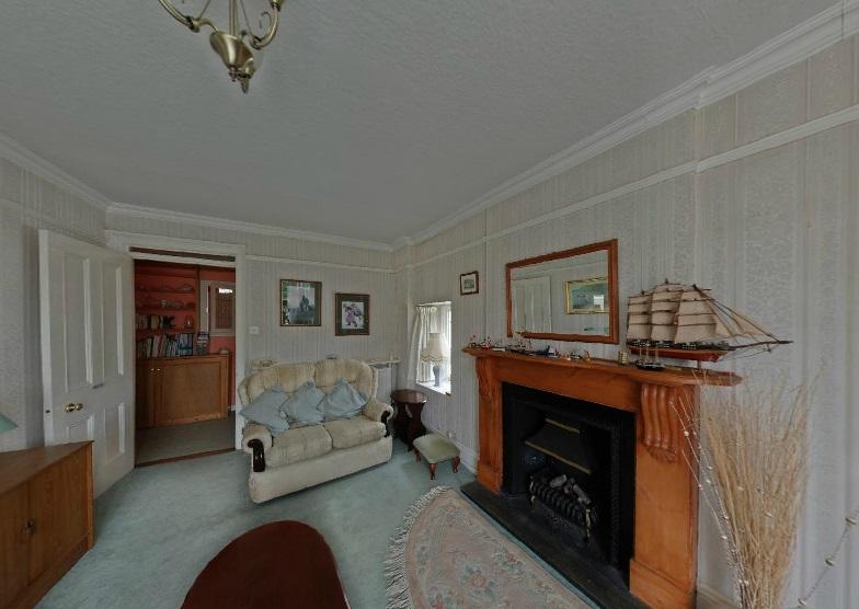 The living room has an open, decorative fireplace, smart TV with Sky and patio doors onto the balcony. On the same level is a study with a smart TV.