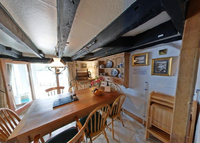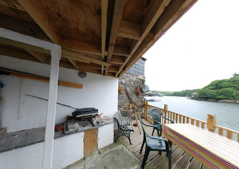 On the lower ground floor you enter the Cornish slate built cellars of the former "Sailors Return" an eighteenth century pub but now delightfully converted. The dining room, with beamed ceiling, leads onto the terrace where guests can use the gas BBQ and enjoy views of the river. The kitchen is also on this floor and this is superbly equipped with a range of fitted units, gas cooker, washing and drying machine and dishwasher, fridge, freezer and microwave.