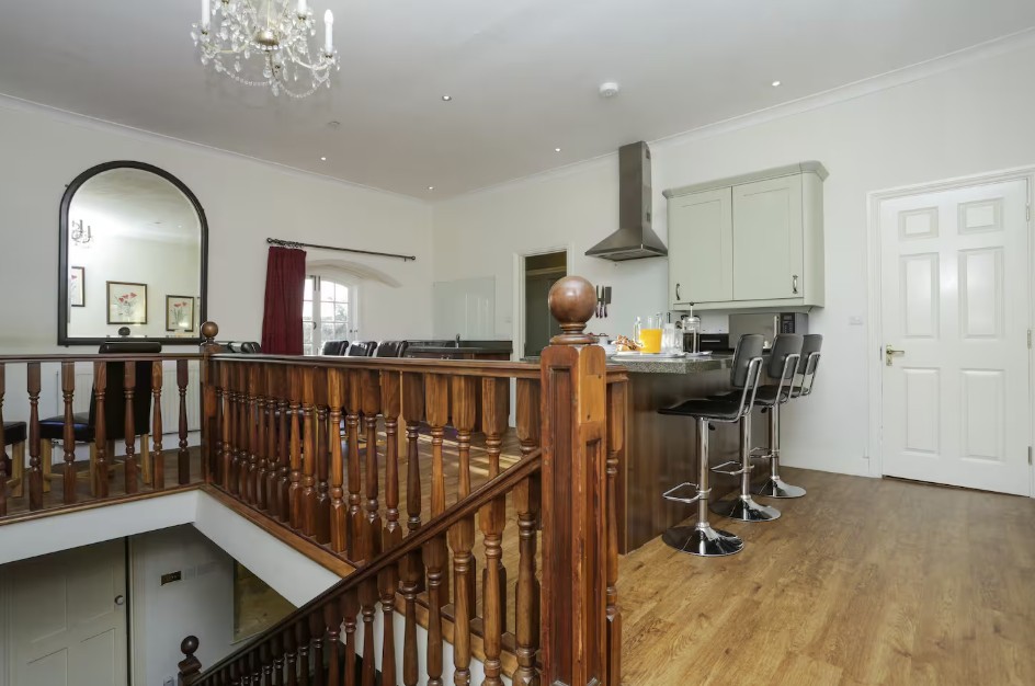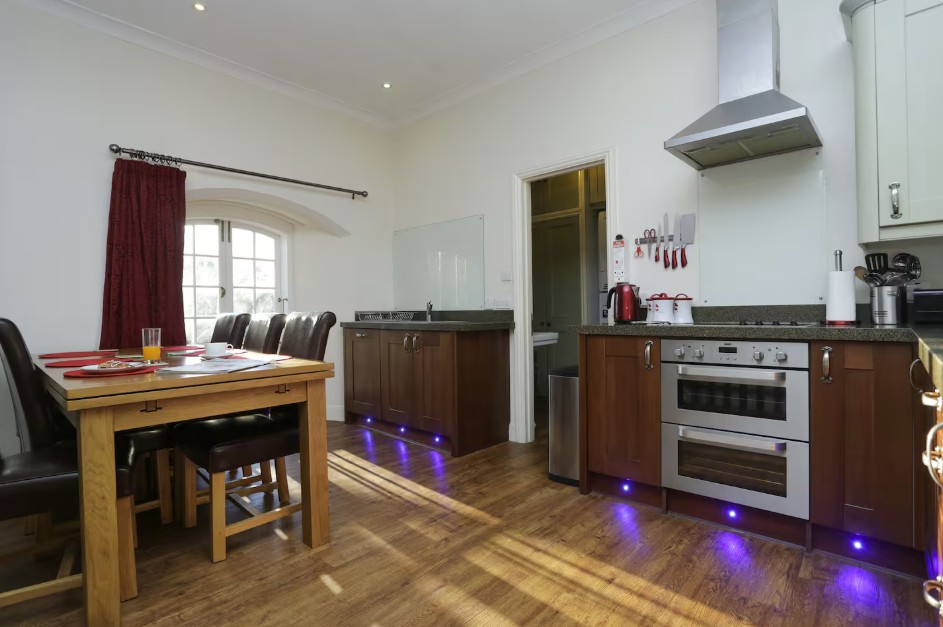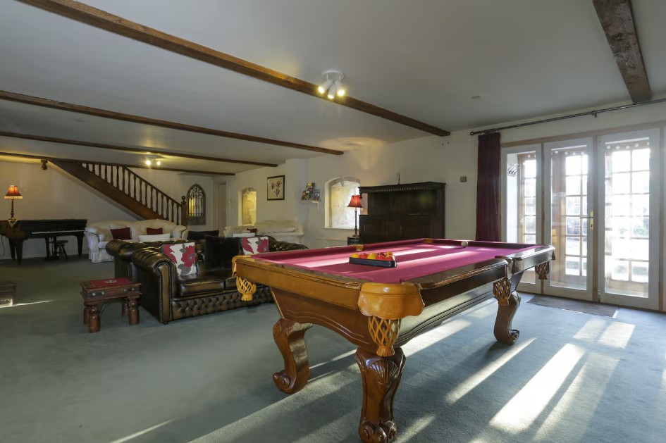 The large 3-bedroom house is able to sleep up to 13 guests easily, with the addition of 3 portable beds and two-bed settees. The sitting room is 40 foot long and contains a full-size American pool table, Wii, Xbox 360, a baby grand piano, 4 three seater sofas and a large television. Each bedroom has its own en suite which makes having additional guests a pleasure. The whole house is perfect for families and entertaining, with an open plan kitchen on the first floor which includes a breakfast bar and a 6-foot oak dining table which can seat up to 12 guests.